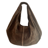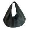 Saco blando para llevar al hombro, forro interior de antelina y bolsillo interior. Cierre con cremallera . Material: piel de borrego entrelazada .