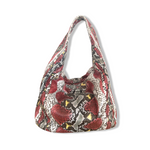 Saco blando, muy ligero, el asa se adapta perfectamente al hombro, cierre con cremallera. En su interior, un bolsillo con cremallera y dos abiertos, todo con detalles en piel de pit贸n.