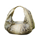 Saco blando, muy ligero, el asa se adapta perfectamente al hombro, cierre con cremallera. En su interior, un bolsillo con cremallera y dos abiertos, todo con detalles en piel de pit贸n.