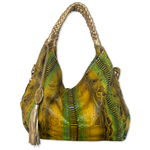 Saco blando, muy ligero, el asa se adapta perfectamente al hombro, cierre con cremallera. En su interior, un bolsillo con cremallera y dos abiertos, todo con detalles en piel de pit贸n.