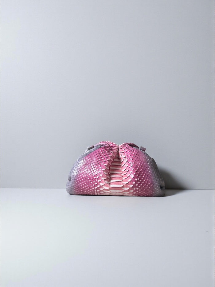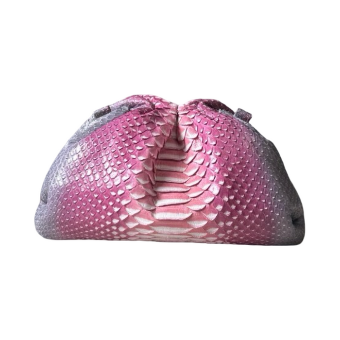 Pouch suave de pitón con cierre magnético, asa para usar en bandolera de piel pitón.