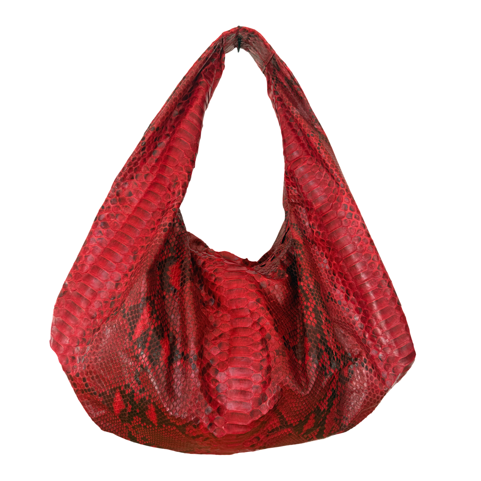 Saco blando, muy ligero, el asa se adapta perfectamente al hombro, cierre con cremallera. En su interior, un bolsillo con cremallera y dos abiertos, todo con detalles en piel de pit贸n.