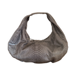 Saco blando, muy ligero, el asa se adapta perfectamente al hombro, cierre con cremallera. En su interior, un bolsillo con cremallera y dos abiertos, todo con detalles en piel de pit贸n.