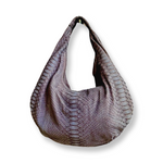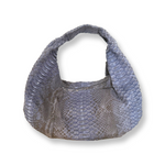 Saco blando, muy ligero, el asa se adapta perfectamente al hombro, cierre con cremallera. En su interior, un bolsillo con cremallera y dos abiertos, todo con detalles en piel de pit贸n.