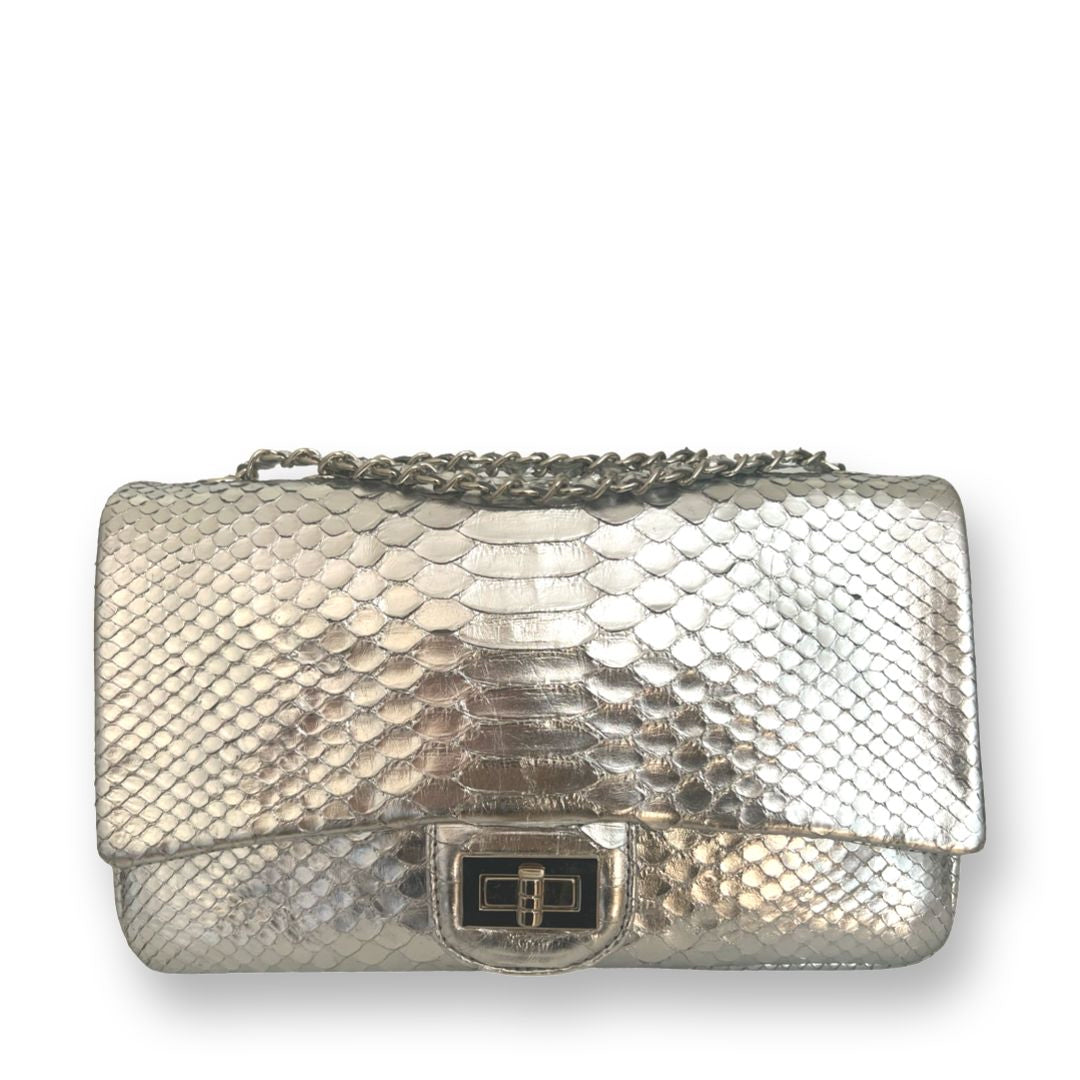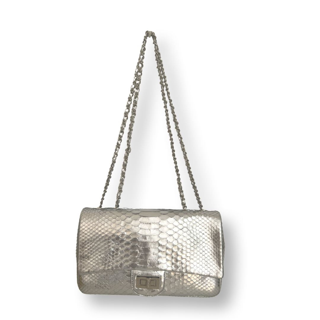 MATERIAL: Piel de pitón, acabados de cierre y cadena dorados.