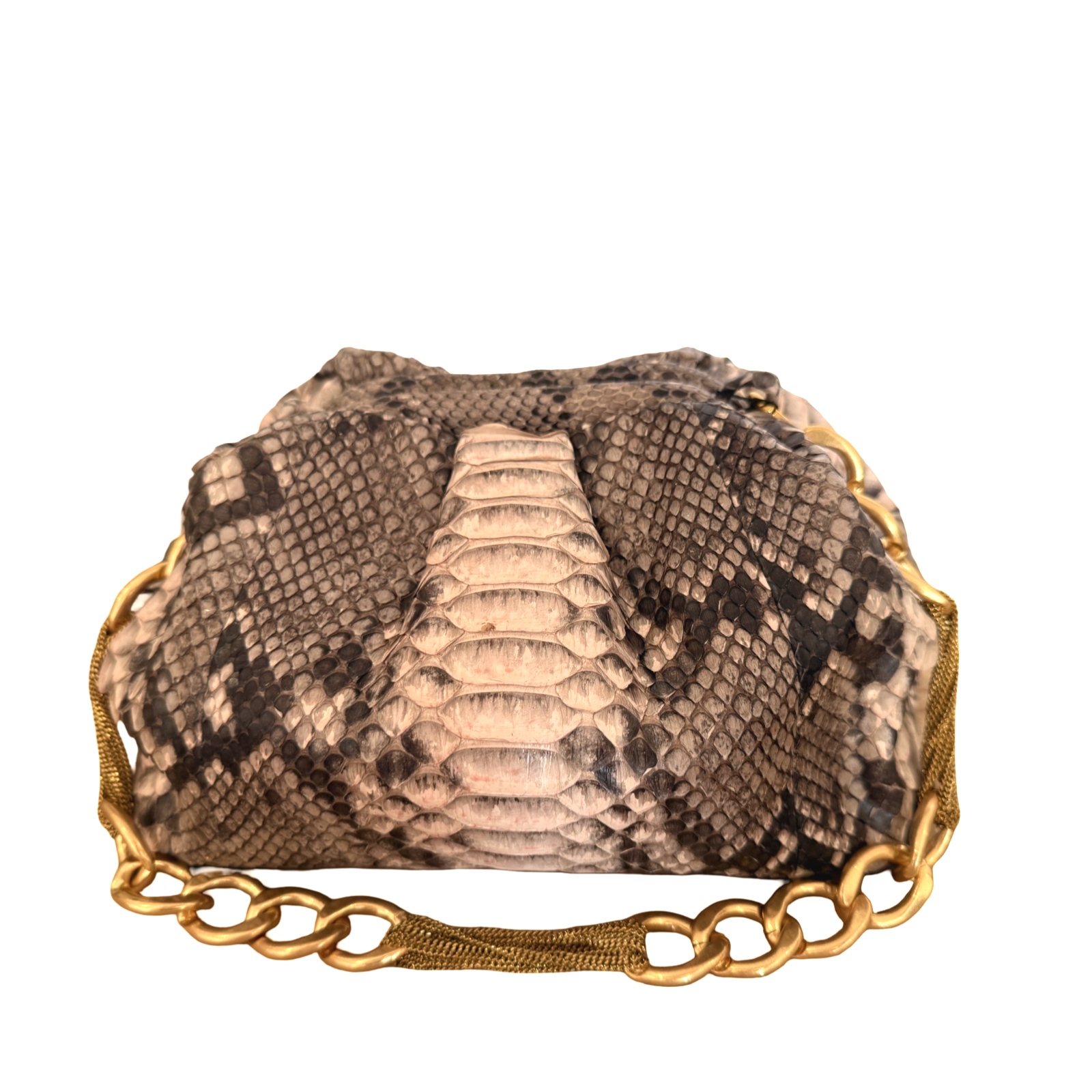 Material: piel de pitón pintada, herrajes en dorado.
