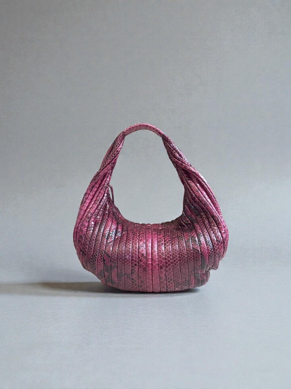 Saco blando, muy ligero, el asa se adapta perfectamente al hombro, cierre con cremallera. En su interior, un bolsillo con cremallera y dos abiertos, todo con detalles en piel de pitón.